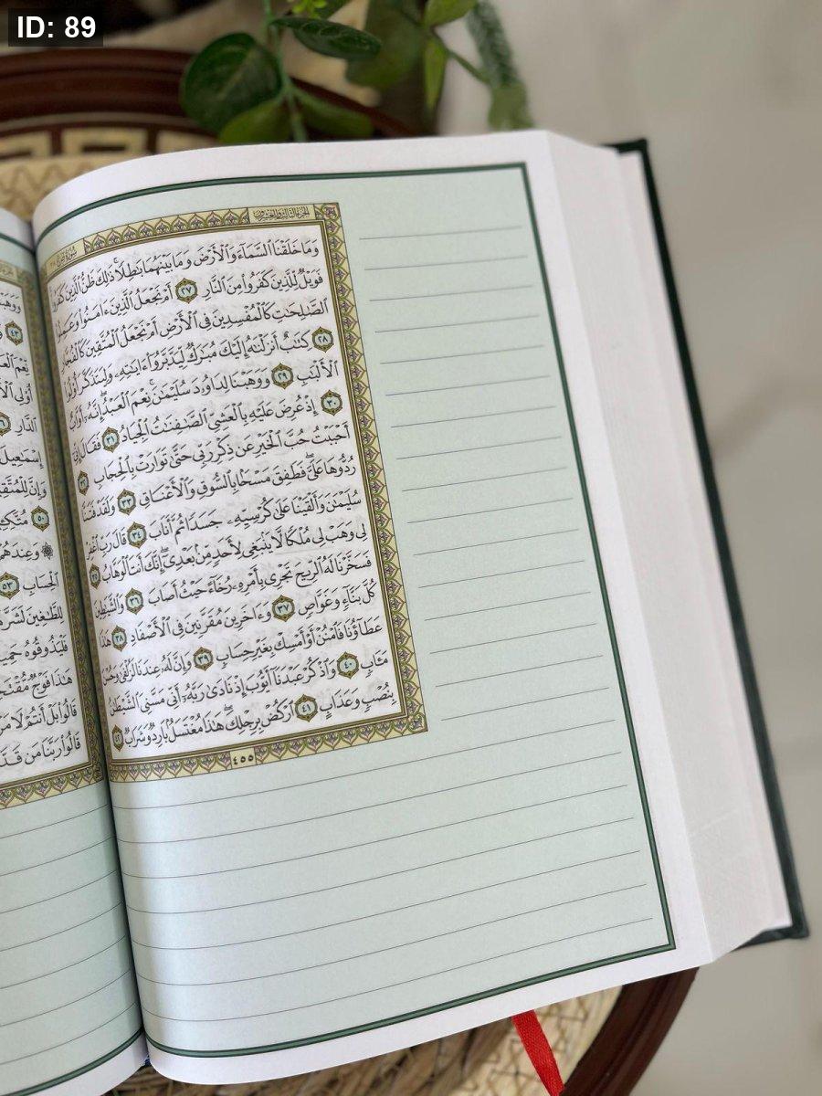 مصحف التدوين هو مصحف مصمم خصيصًا لعشاق التدوين والتأمل في معاني القرآن الكريم. ✍️📖 يتميز بوجود مساحات فارغة واسعة على جوانب الصفحات، مما يتيح للقارئ كتابة ملاحظاته، وتأملاته، وتفسيراته، أو حتى خطط الحفظ والمراجعة.